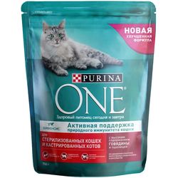 Корм сухой "Purina One" для кастрированных котов и стерилизованных кошек, с говядиной и пшеницей, 750 г