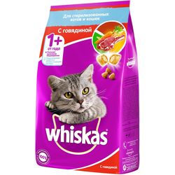 Корм сухой Whiskas, для стерилизованных кошек и котов, с говядиной и вкусными подушечками, 1,9 кг