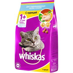 Корм сухой Whiskas, для стерилизованных кошек и котов, с курицей и вкусными подушечками, 1,9 кг