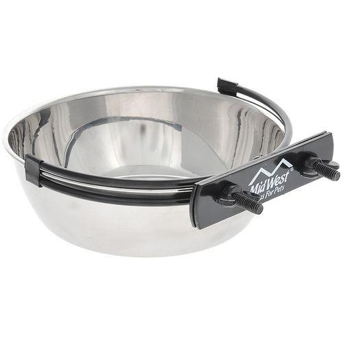Практичная подвесная миска "Midwest" оснащена держателем для клеток и переносок. Крепежное устройство прочно фиксируется на решетку, миска легко устанавливается в держатель и не может быть извлечена или перевернута животным. Изготовлена из высококачественной нержавеющей стали. Объем: 600 мл. Диаметр миски: 14 см. Высота миски: 5 см.Товар сертифицирован.