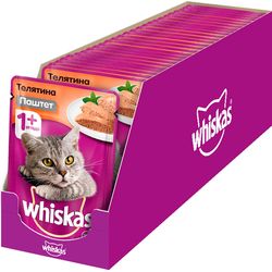 Консервы "Whiskas" для кошек от 1 года, мясной паштет с телятиной, 85 г, 24 шт