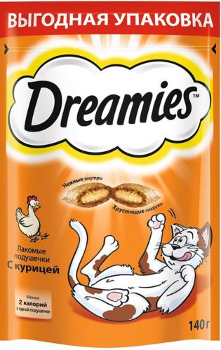 Лакомство для взрослых кошек "Dreamies" в виде подушечек с курицей - это вкусная добавка к ежедневному рациону. В состав входят важные для кошки питательные вещества, витамины и минералы, а значит, такое угощение приносит не только радость, но и пользу. Кошкам нравится разнообразие в питании и сочетание текстур, именно поэтому ассортимент вкусов, хрустящая текстура снаружи и нежный паштет внутри делают это лакомство необыкновенно вкусным. Вы можете давать лакомство Dreamies каждый раз, когда захотите побаловать любимца. Состав: растительные экстракты белка, злаки, масла и жиры, мясо и субпродукты животного происхождения (мин. 4% курица), минеральные вещества, субпродукты растительного происхождения. Пищевая ценность (на 100г): белок 34 г, жиры 20 г, зола 9.5 г, клетчатка 1 г, влажность не более 14 г, витамин А 528.8 МЕ, витамин В1 1.5мг, витамин В2 0.7мг, витамин В6 0.6 мг, витамин D3 58.3 МЕ, витамин Е 8.8 мг, пантагидрат сульфата меди 2.3 мг, моногидрат сульфата марганца 4.3 мг, йодид калия 0.2 мг, моногидрат сульфата цинка 19.4 мг. Товар сертифицирован.