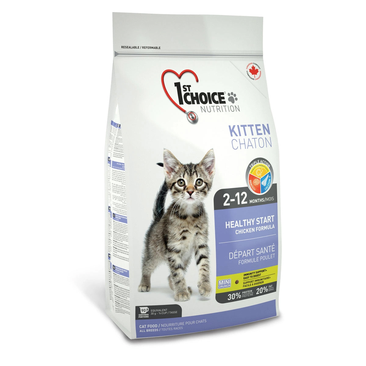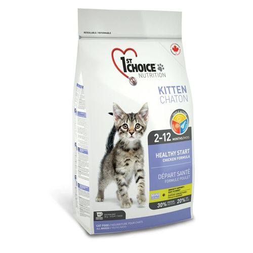 Сухой корм 1st Choice "Здоровый старт" с идеальной формулой для начального прикорма предназначен для котенка с 2 месяцев, когда он нуждается в новых источниках питания вместо материнского молока. При этом нет необходимости разделять котенка с мамой. Корм содержит все необходимое не только для растущего организма, но и для беременных и кормящих кошек. Оптимальное питание для старта в здоровую жизнь! Мелкие гранулы легко усваиваются в организме котенка, укрепляя иммунитет, полученный от матери. Входящий в состав жир лосося - самый лучший источник DHA (докозагексаеновой кислоты), которая обеспечивает оптимальное развитие центральной нервной системы, головного мозга и зрения. Пребиотики поддерживают иммунитет и способствуют хорошему пищеварению, кальций - правильному развитию костной системы котенка. DHA развивает центральную нервную систему, головной мозг и зрение.Товар сертифицирован.