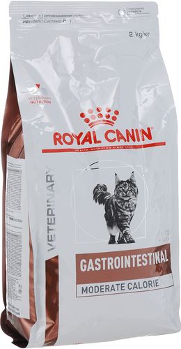Сухой диетический корм Royal Canin "Gastro Intestinal. Moderate Calorie" для кошек c пониженным содержанием жира при воспалении кишечника и нарушении пищеварения. Показания: - Острая и хроническая диарея; - Хроническое воспаление кишечника; - Плохая переваримость и абсорбция питательных веществ; - Пролиферация бактерий в тонком кишечнике; - Колит; - Гастрит; - Панкреатит; - Экссудативная энтеропатия; Противопоказания: Беременность, лактация, рост. Длительность курса применения: Для усиления регенераторной способности ворсинчатого эпителия стенки кишечника при остром воспалительном процессе рекомендуется диетотерапия с минимальным сроком три недели. При хронических заболеваниях может потребоваться назначение диетического корма на протяжении всей жизни животного. Для оптимальной работы пищеварительной системы необходимо соблюдение суточного рациона и увеличение его кратности. Товар сертифицирован. Уважаемые клиенты! Обращаем ваше внимание на то, что упаковка может иметь несколько видов дизайна. Поставка осуществляется в зависимости от наличия на складе.