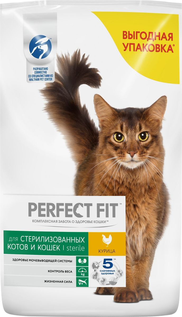 В рационе PERFECT FIT Sterile учтены потребности организма кошки, прошедшей стерилизацию. Витамины группы B и железо помогут ей оставаться активной, пребиотики поддержат работу пищеварительной системы, а специальный адаптированный нутриентный профиль позволит следить за оптимальным балансом веса. Здоровье мочевыводящей системы - Баланс минералов, помогающий снижению риска формирования камней и поддержанию здоровья мочевыводящей системы Контроль веса - Специальная рецептура с пониженным содержанием жира позволяет снизить потребление калорий в каждом кормлении Жизненная сила - Обогащен витаминами группы В и железом для поддержания жизненной силы
