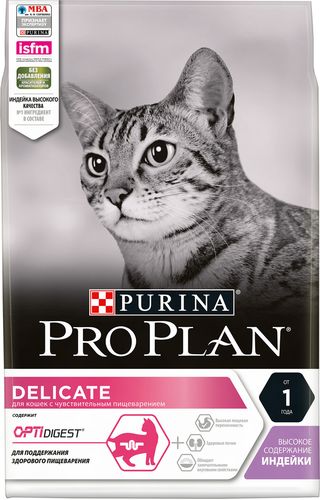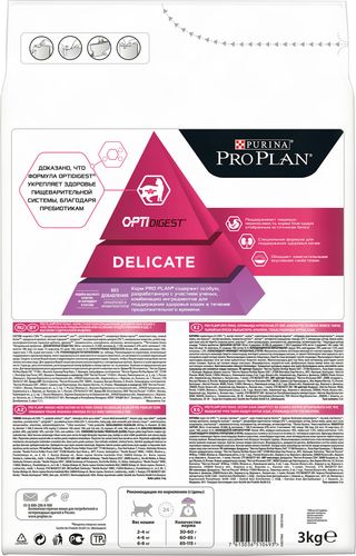 Сухой корм Pro Plan "Delicate" - это полноценный рацион для взрослых кошек с чувствительным пищеварением или с особыми предпочтениями. Он содержит особую разработанную с участием ученых комбинацию ингредиентов для поддержания здоровья вашего питомца в течение продолжительного времени. Особенности сухого корма: содержит уникальную формулу для поддержания здоровья почек, помогает улучшать пищевую переносимость благодаря ограниченному количеству источников белка, обладает замечательными вкусовыми свойствами и придется по вкусу даже самым капризным кошкам, поддерживает здоровье иммунной системы. Состав: индейка (18%), рис, кукурузный глютен, концентрат горохового белка, сухой белок индейки, животный жир, яичный порошок, кукурузный крахмал, кукуруза, минеральные вещества, рыбий жир, вкусоароматическая кормовая добавка, дрожжи. Анализ: белок: 40%, жир: 18%, сырая зола: 7%, сырая клетчатка: 0,5%. Добавки на кг: витамин А: 32 600; витамин D3: 1060; витамин Е: 720 мг/кг; железо: 60; йод: 1,9; медь: 11; марганец: 15; цинк: 140; селен: 0,12 мг/кг. Товар сертифицирован.
