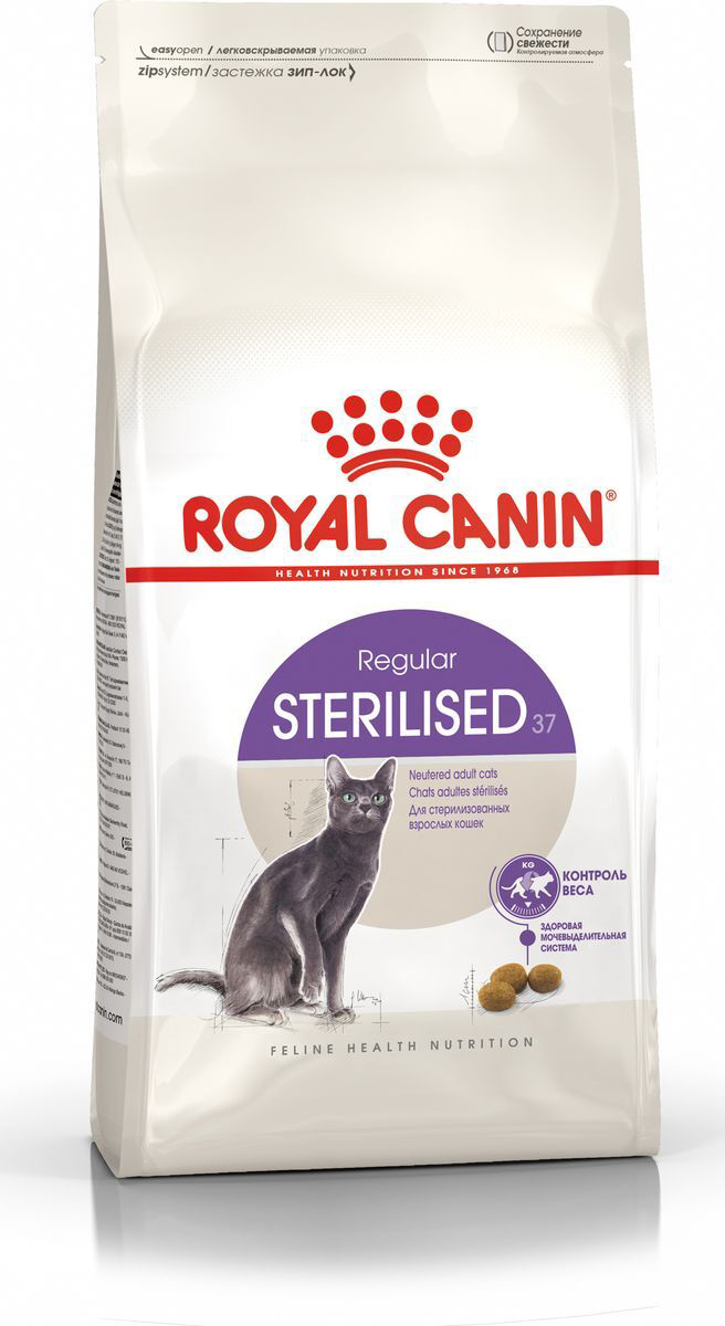 Сухой корм Royal Canin "Sterilised 37" - полнорационный сухой корм подходит стерилизованным кошкам в возрасте от 1 до 7 лет. Контроль потребления калорий. Корм Sterilised 37 ограничивает риск набора избыточной массы тела стерилизованной кошкой благодаря умеренному содержанию жиров (12%). L-карнитин способствует активной утилизации жиров. Поддержание мышечной массы кошки. Повышенное содержание (37%) белков высокой биологической ценности в корме способствует поддержанию мышечной массы и тонуса мышц стерилизованной кошки. Эффективная защита мочевыделительной системы кошки. Корм способствует регулярному мочеиспусканию и поддерживает необходимый уровень кислотности мочи (pH: 6-6,5) что предотвращает риск возникновения мочекаменной болезни у стерилизованной кошки. Состав: дегидратированные белки животного происхождения (птица), кукуруза, изолят растительных белков, кукурузная клейковина, растительная клетчатка, гидролизат белков животного происхождения, животные жиры, пшеница, рис, свекольный жом, минеральные вещества, дрожжи, рыбий жир, фруктоолигосахариды, соевое масло. Добавки (в 1 кг): Витамин A: 19000 ME, Витамин D3: 1000 ME, Железо: 31 мг, Йод: 3,1 мг, Марганец: 41 мг, Цинк: 122 мг, Ceлeн: 0,05 мг, L-карнитин: 100 мг. Товар сертифицирован.Уважаемые клиенты!Обращаем ваше внимание на изменения в дизайне упаковки.