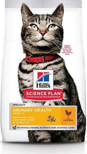 -Помогает поддерживать здоровье мочевыводящих путей от почек до мочевого пузыря. -Поддерживает здоровье мочевого пузыря. -Способствует превращению жира в энергию, уменьшая жировые отложения. -Поддерживает здоровье иммунной системы.Точно сбалансированное питание для поддержания здоровья мочевыводящих путей от мочевого пузыря с целевым значением pH и контролируемым уровнем минералов.Назначение: Взрослым кошкам и взрослым стерилизованым кошкам обоих полов от 1 года до 6 лет, для поддержания здоровья мочевыводящих путей.Не рекомендуется: Котятам Беременным и кормящим кошкам. Во время беременности и лактации кошек нужно переводить на рацион Hill's Science Plan для котят.Длительность курса: Перевод на данный корм: Скорректируйте количество корма в соответствии с размером вашего питомца для поддержания оптимального веса. Если вы сомневайтесь, проконсультируйтесь с вашим ветеринарным врачом. Пробуете этот рацион впервые? В течение 7 дней постепенно увеличивайте содержание нового корма по отношению к прежнему до момента его полного замещения. Обеспечьте питомцу постоянный доступ к свежей воде. Пищевые потребности вашего питомца могут меняться с возрастом. Уточняйте у вашего ветеринарного специалиста подходит ли текущий рацион вашему питомцу на каждом осмотре. Во избежание удушья, храните открытую упаковку в месте недоступном для питомцев и детей.Рекомендация по кормлению: Следуйте рекомендациям по кормлению, указанным на упаковке. Скорректируйте количество корма в соответствии с размером вашего питомца для поддержания оптимального веса. Если у вас есть сомнения, обратитесь к ветеринарному специалисту. Пробуете этот корм впервые? В течение 7 дней постепенно увеличивайте содержание нового корма по отношению к прежнему до момента его полного замещения. У кошки всегда должен быть доступ к чистой питьевой воде! Потребности ваших питомцев в питании могут меняться с возрастом. Уточняйте у вашего ветеринарного специалиста подходит ли текущий рацион вашему питомцу на каждом осмотре.Калорийность: Ккал/100 г: 379