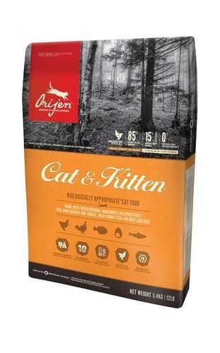 Полноценный корм для кошек и котят всех пород.Корма ORIJEN содержат 40% высокопитательных белков и ограниченное количество (19%) низкогликемических углеводов, что обеспечивает кошкам и котятам рацион, соответствующий их эволюционным и биологическим потребностям.Не имеющий аналогов среди других кормов для кошек или котят, корм ORIJEN на 2/3 состоит из СВЕЖЕГО (охлаждённого, без консервантов) или СЫРОГО (быстрозамороженного, без консервантов) мяса, которое составляет первые 10 ингредиентов.1/3 свежего мяса цыплят и индейки, а также рыбы бережно высушивается при 90°С для обеспечения корма концентрированным источником высокопитательного белка, который не может быть получен за счёт одного лишь свежего мяса.Богатые питательными веществами ингредиенты в соотношении WholePrey включают свежее мышечное мясо, внутренности и хрящи, а также цельную рыбу и яйца, являясь источником практических всех питательных веществ, в которых нуждается ваша кошка или котёнок.Добавление бережно сублимированной печени служит естественным усилителем запаха и вкуса корма ORIJEN, что превращает его в деликатес даже для привередливых кошек.