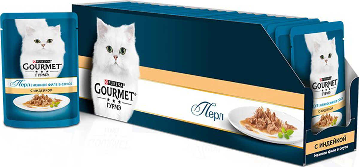 Мини-филе в подливе Gourmet Perle - это изысканное угощение с превосходным моно-вкусом, которым ваша кошка будет наслаждаться каждый день. Ваш гурман оценит нежнейшие кусочки с мясом индейки, приготовленные в аппетитном соусе. Суточная норма: 3-4 пакетика в день для взрослой кошки (средний вес 4 кг), в два приема. Данная суточная норма рассчитана для умеренно активных взрослых кошек, живущих в условиях нормальной температуры окружающей среды. В зависимости от индивидуальных потребностей кошки норма кормления может быть скорректирована для поддержания нормального веса вашей кошки. Подавайте корм комнатной температуры. Следите, чтобы у вашей кошки всегда была чистая, свежая питьевая вода. Состав: Мясо и продукты переработки мяса (в том числе индейки), экстракт растительного белка, рыба и продукты переработки рыбы, минеральные вещества, сахара, красители, витамины. Микроэлементы: МЕ/кг: витамин A:800 ; витамин D3:120; витамин Е:18; мг/кг: железо:9; йод:0,2; медь:0,8; марганец:1,8; цинк:15. Гарантированные показатели: Влажность: 79%, белок: 14%, жир: 2,5%, сырая зола: 2,2%, сырая клетчатка: 0,5%. Условия хранения: В сухом прохладном месте. После вскрытия упаковки хранить в холодильнике максимум 24 часа. Уважаемые клиенты! Обращаем ваше внимание на то, что упаковка может иметь несколько видов дизайна. Поставка осуществляется в зависимости от наличия на складе. Товар сертифицирован.
