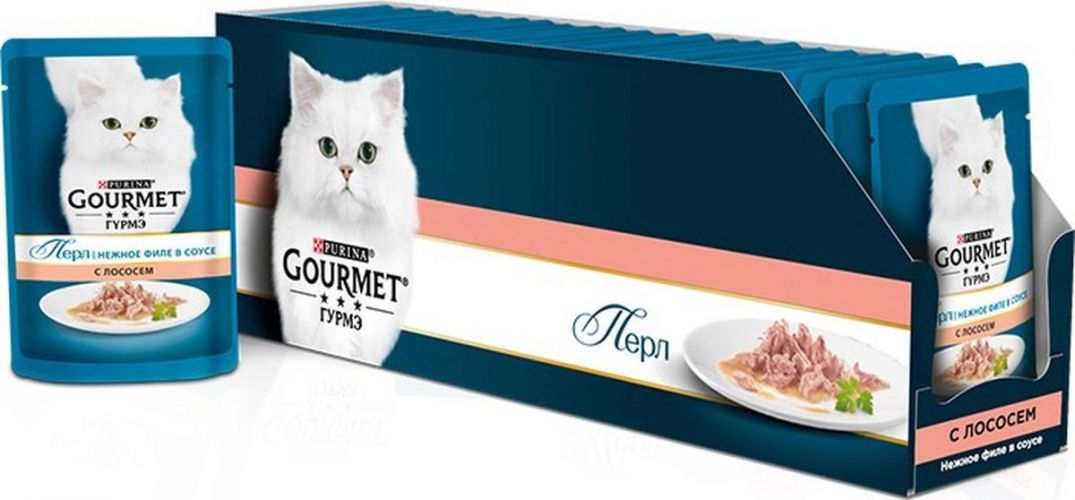 Ваша кошка - настоящий гурман, и порой ей сложно угодить. Корм Gourmet "Perle" - это изысканное угощение с превосходным вкусом, которым ваша кошка будет наслаждаться каждый день. Ваш гурман оценит нежнейшие кусочки с мясом или рыбой, приготовленные в аппетитном соусе. Корм Gourmet "Perle" - изысканное угощение на каждый день. Рекомендации по кормлению: Суточная норма: 3-4 пакетика в день для взрослой кошки (средний вес 4 кг), в два приема. Данная суточная норма рассчитана для умеренно активных взрослых кошек, живущих в условиях нормальной температуры окружающей среды. В зависимости от индивидуальных потребностей кошки норма кормления может быть скорректирована для поддержания нормального веса вашей кошки. Подавайте корм комнатной температуры. Следите, чтобы у вашей кошки всегда была чистая, свежая питьевая вода. Условия хранения: Закрытый пакетик хранить в сухом прохладном месте. После открытия продукт хранить в холодильнике максимум 24 часа. Состав: мясо и продукты переработки мяса, экстракт растительного белка, рыба и продукты переработки рыбы (в том числе лосось 4%), минеральные вещества, сахара, витамины, красители. Гарантируемые показатели: влажность 79,0%, белок 14.0%, жир 2,5%, сырая зола 2,2%, сырая клетчатка 0,5% Добавленные вещества: МЕ/кг: витамин A: 800; витамин D3: 120; витамин Е: 18; мг/кг: железо: 9; йод: 0,2; медь: 0,8; марганец: 1,8; цинк: 15. Вес: 85 г. Товар сертифицирован.