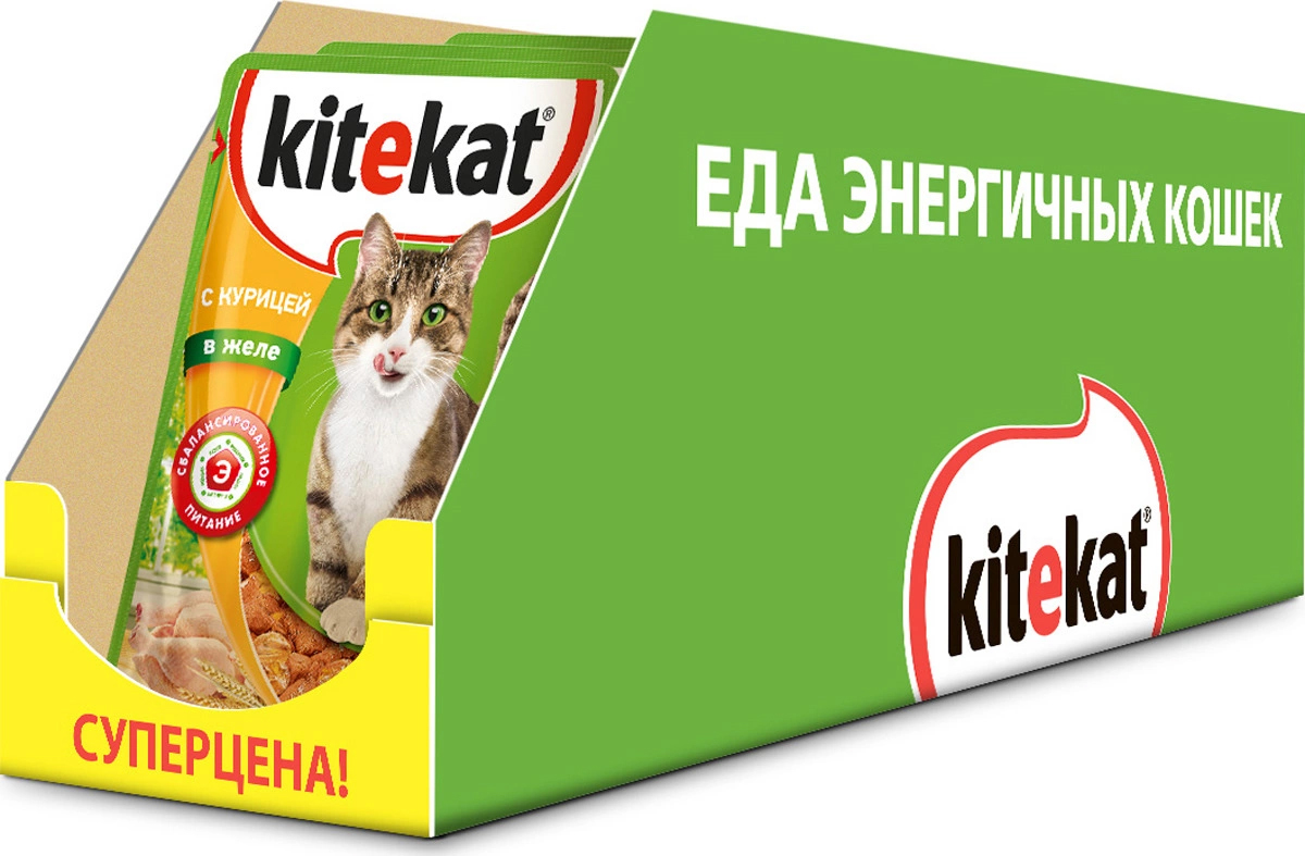 Консервы "Kitekat" - это порция сочных кусочков с курицей, приготовленных по особому рецепту. В основе корма формула сбалансированного питания, которая содержит белки, минералы, витамины, таурин и животные жиры. Порадуйте вашего питомца - в каждой порции только качественные продукты, как и те, что на вашей кухне: мясные ингредиенты, злаки и жиры животного происхождения. Все натуральные свойства сохранены и правильно сбалансированы для энергии и здоровья вашего кота. В упаковке 28 паучей по 85 г. Товар сертифицирован.