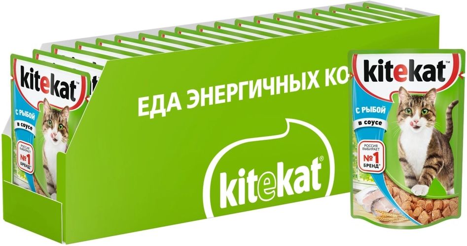 Натуральный и насыщенный вкус – то, что нужно для отличной формы и новых спортивных побед! Ведь Kitekat «с рыбой в соусе» – это порция сочных кусочков с рыбой, приготовленных по особому рецепту. В его основе – формула сбалансированного питания, которая содержит белки, минералы, витамины, таурин и животные жиры. Kitekat– это идеальный источник жизненных сил для кошки.В рацион домашнего любимца нужно обязательно включать влажный корм, ведь его главные достоинства - высокая калорийность и питательная ценность. Влажный корм лучше усваивается, чем сухие корма. Важно и то, что животные, имеющие в рационе влажный корм, получают больше влаги. Рекомендуемая дневная норма потребления: Кошки до 4 кг - 400 г; Беременная - 600 г; Кормящая - 800 г.Состав: мясо и субпродукты, рыба (минимум 4%), злаки, таурин, витамины, минеральные вещества.Содержание питательных веществ (100 г): белки - 6 г; жиры - 3,5 г; зола - 2,5 г; клечатка - 0,3; витамин А - не менее 150 МЕ; витамин Е - не менее 0,9 мг; влага - 84 г Энергетическая ценность (100 г): 65 ккал / 272 кДж.