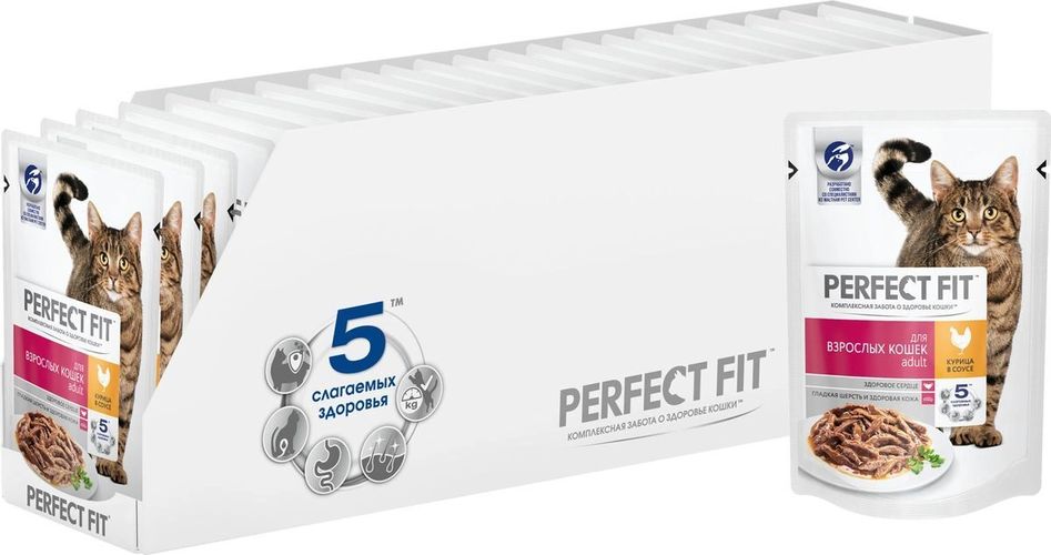 Корм консервированный Perfect Fit - высококачественное питание, специально приготовленное, чтобы поддержать здоровье и красоту домашних кошек с пушистой шерстью. Если у кошки длинная и блестящая шерсть, она чувствует себя настоящей моделью. Пушистые красавицы и красавцы грациозно и с достоинством ухаживают за своей шерсткой, но им необходимо особое питание, помогающее заботиться о красоте и здоровье шерсти. Особенности корма: - способствует поддержанию здоровой кожи и блестящей шерсти благодаря содержанию линолевой кислоты и цинка; - содержит натуральную клетчатку, помогающую контролировать образование комочков шерсти и способствующую выведению шерсти из организма кошки; - не содержит сои, консервантов, ароматизаторов, искусственных красителей, усилителей вкуса. Состав: мясо и субпродукты (в том числе курица минимум 14%), злаки, растительное масло, клетчатка, таурин, витамины, минеральные вещества. Пищевая ценность в 100 г: белки - 8,5 г, жиры - 4,5 г, зола - 2,5 г, клетчатка - 0,5 г, витамин А - не менее 200 МЕ, витамин Е - не менее 2 мг, таурин - 90 мг, влага - 82 г. Энергетическая ценность (100 г): 78 ккал. В упаковке 24 пауча по 85 г. Товар сертифицирован.