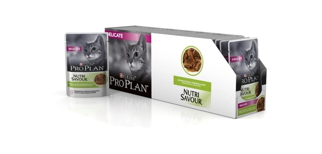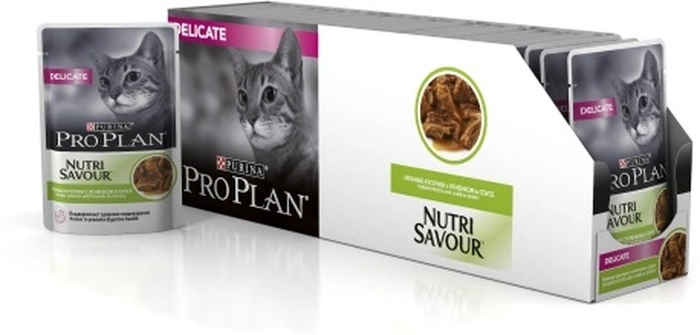 Качественные ингредиенты корма "Pro Plan"способствуют тщательному перевариванию пищи. Помогает уменьшить кожные реакции, связанные с пищевой непереносимостью. Нежные кусочки в пикантном соусе очень привлекательны для кошек благодаря запатентованной технологии производства. Доказано: способствует улучшению пищеварения благодаря содержанию инулина, пребиотика, который помогает сбалансировать кишечную флору кошек с повышенной чувствительностью. Состав: Мясо и продукты переработки мяса (в том числе ягненок 4%), экстракты растительного белка, рыба и продукты переработки рыбы, аминокислоты, продукты переработки растительного сырья, минеральные вещества, растительные масла и животные жиры, загустители, различные сахара, витамины, красители.