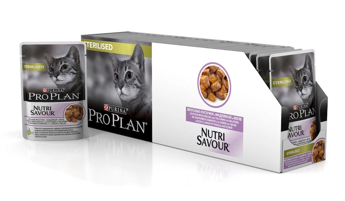 Консервы Pro Plan "Nutri Savour" помогает поддерживать здоровье мочевыделительной системы у кастрированных котов и стерилизованных кошек. Способствует поддержанию оптимального веса тела кошки. Помогает поддерживать естественную защиту организма благодаря содержанию антиоксидантов, таких как витамин Е. Нежные кусочки в пикантном соусе обладают приятным вкусом благодаря запатентованной технологии производства департамента Purina компании Nestle.Состав: мясо и мясные субпродукты (в том числе индейка 4%), рыба и продукты переработки рыбы, минеральные вещества, сахар, витамины. Добавленные вещества: МЕ/кг: витамин A 1057, витамин D3 147; витамин E 287, мг/кг: железо 10, йод 0,39, медь 0,96, марганец 1,77, цинк 27, селен 0,023. Гарантируемые показатели: влажность 82%, белок 9,9%, жир: 3,3%, сырая зола 2,5%, сырая клетчатка 0,7%.Товар сертифицирован.