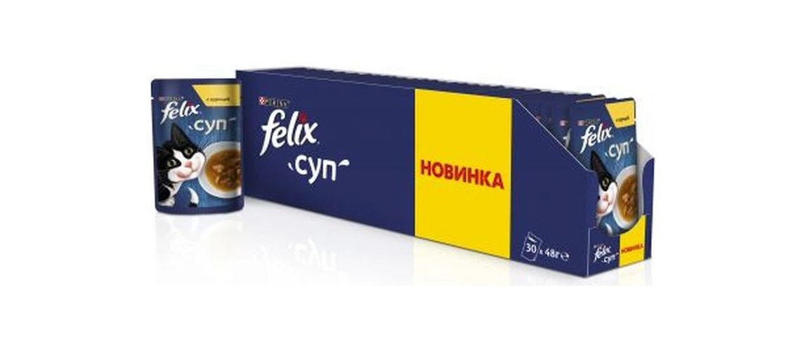Корм влажный суп для взрослых кошек с курицей FELIX 48 г поможет разнообразить рацион домашнего питомца. В состав продукта входят только натуральные продукты – крупные кусочки мяса птицы, приготовленные в ароматном соусе. Большое количество жидкости и отсутствие злаковых культур позволяет корму легко усваиваться, не затрудняя пищеварение. Сбалансированное содержание белков, жиров, витаминов и полезных микроэлементов позволяет удовлетворить все потребности организма взрослых кошек. Продукт рекомендуется для домашних питомцев весом не менее 4 кг. При кормлении пища должна быть комнатной температуры.