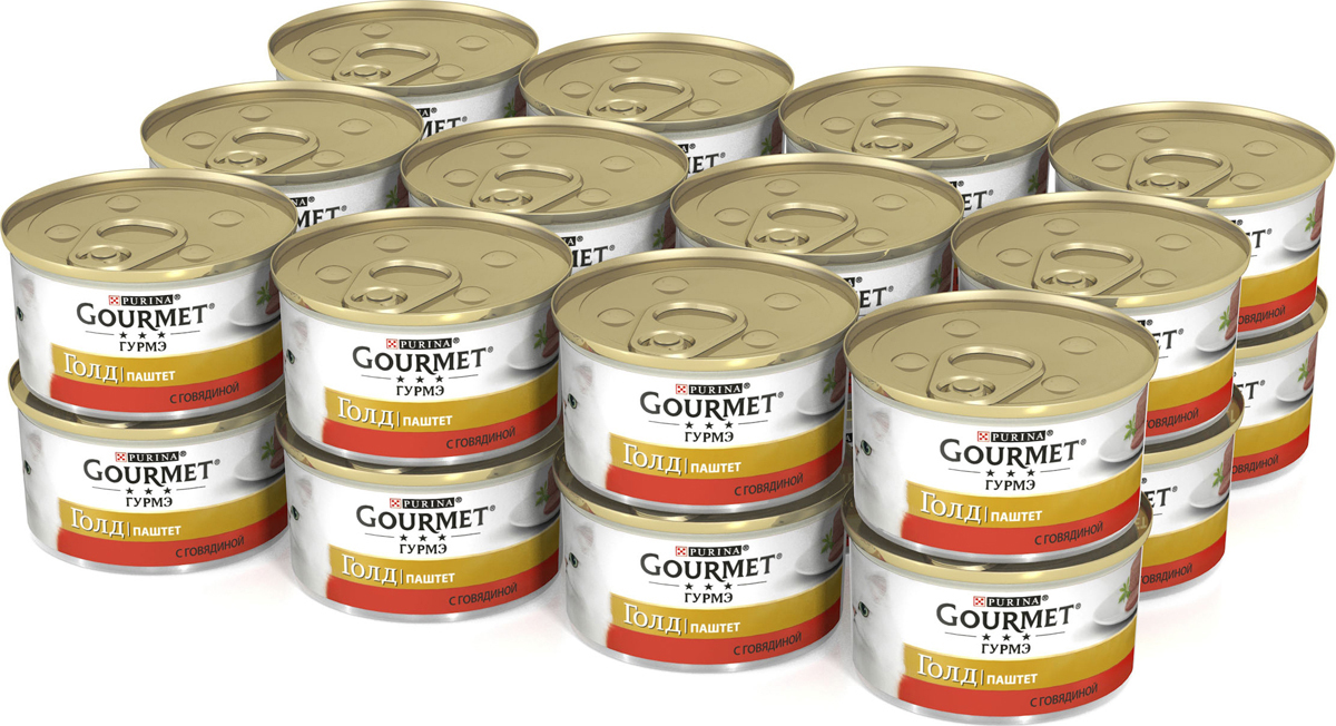GOURMET Gold® – это золотая коллекция вкусов и текстур, такие как террин по-французски, паштет, нежные биточки и другие роскошные блюда, перед которыми не устоит даже самая взыскательная кошка. мясо и продукты переработки мяса (говядина), продукты переработки злаков, минеральные вещества, сахара, витамины. МЕ/кг: витамин А: 1440; витамин D3: 220 мг/кг: железо: 10; йод:0,2; медь: 0,9; марганец: 1,9; цинк: 10 С консервантами .
