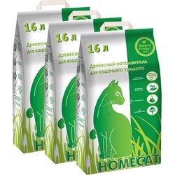Наполнитель для кошачьих туалетов HomeCat, древесный, мелкие гранулы, 3 шт по 16 л