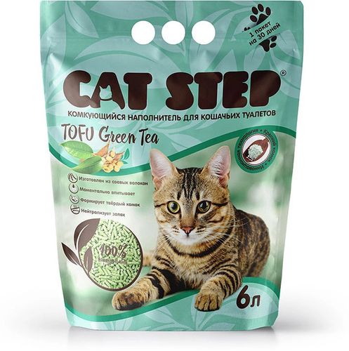 Спрессованные соевые волокна комкующегося наполнителя Cat Step Тоfu эффективно впитывают влагу. Благодаря волоконной структуре при попадании жидкости соевые гранулы образуют крепкий комок и надежно запирают запах внутри. Наполнитель Cat Step Тоfu нетоксичен, его гранулы не пылят и не разлетаются при утилизации, а экстракт зелёного чая придаёт изделию приятный легкий аромат. При этом каждый сформировавшийся комок следует смывать отдельно. При необходимости утилизировать сразу несколько комков, смывать их необходимо поочередно, делая в промежутках холостой слив воды. Цвет гранул: светло-зеленый Вес: 2,7 кг.
