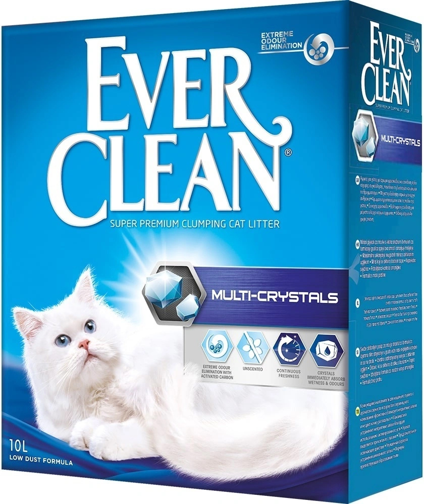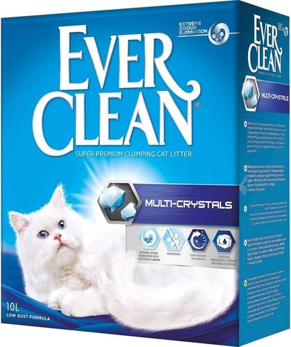 Ever Clean® - это элитная серия высококачественных комкующихся наполнителей с уникальными свойствами. Производится из специально обработанной и очищенной от пыли глины. В каждую гранулу помещен активированный уголь, который улавливает и блокирует неприятные запахи.Ever Clean® Multi-Crystals - наполнитель, разработанный специально для нестерилизованных, а также для котов и кошек с высоким уровнем аммиака в моче. Кристаллы силикагеля работают как фильтр, пропуская мочу и задерживая аммиак внутри кристаллов.Комкование и экономичностьВысококачественная европейская глина способствует образованию плотных и плоских комков, тем самым обеспечивает меньший расход наполнителя. Эффективно борется со всеми источниками неприятного запаха, тем самым поддерживает чистоту вашего дома, здоровье и благополучие вашего любимца.Одной упаковки 10л хватает до 2-х месяцев! Согласитесь, это действительно выгодно!ПреимуществаИдеален для нестерилизованных кошек и кошек со стойким запахом мочиМультикристаллы мгновенно поглощают не приятныезапахи и пары аммиакаБез ароматизатора для чувствительных кошек