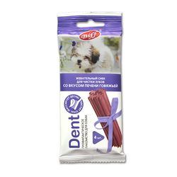 Лакомство для собак, жевательный снек "Dent" для собак мелких пород, со вкусом печени говяжьей, 4 шт