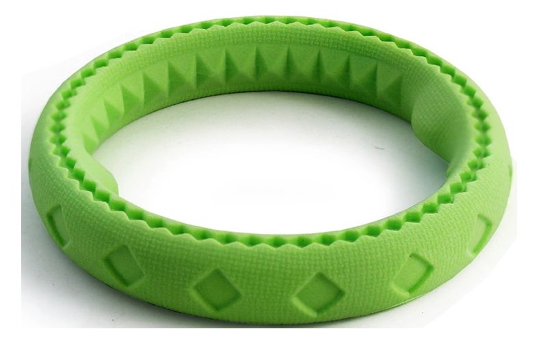 Оригинальная игрушка в форме кольца выполнена из термопластичной резины и подходит для собак крупных пород. Прочная и в то же время обладающая мягкой структурой, она станет идеальным решением для четвероногих питомцев. Изделие послужит хорошим "напарником" для игры и позаботится о здоровье зубов животного. Тонкий аромат яблока дополнительно привлечет внимание питомца и позволит сделать игру или тренировку еще интереснее. Цвет изделия: зеленый. Размер изделия: d = 240*33 мм.
