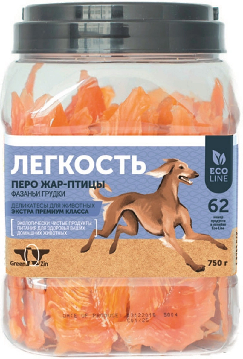 Состав: Фазанья грудка, соль. Компонентный состав: белки - 44 г, жиры - 3 г
