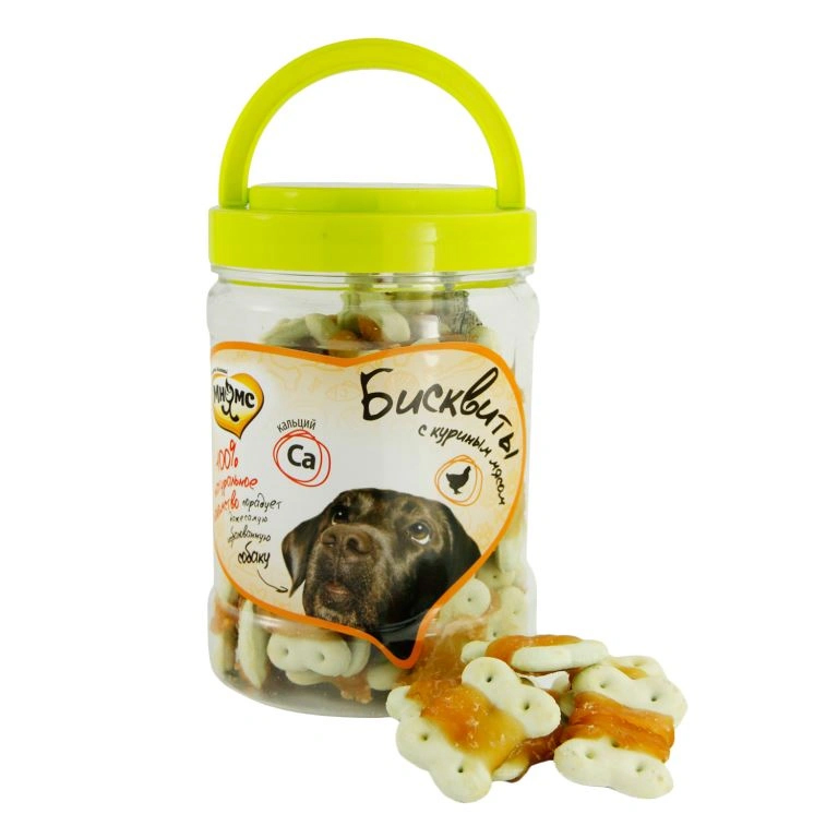 Бисквиты "Мнямс" - это аппетитное хрустящее печенье в форме косточек в натуральном курином мясе. Они придутся по вкусу даже самому капризному любимцу. Вкусное и здоровое угощение идеально подходит в качестве поощрения для игр и тренировок. Состав: Белок 20%,Жир 2%, Клетчатка 1,5%, Зола 3%, Влажность 18%, Пшеничная мука 57,5%, курица 35%, сахар 5%, растительное масло 2%, соль 0,2%, пропионат кальция 0,2%, хлорофилл 0,1%. При кормлении необходимо учитывать возраст и активность животного. Подходит для щенков с 4-х месяцев. Свежая вода всегда должна быть доступна вашему питомцу. Менее 5 кг - 1-2 бисквита 5-10 кг - 2-3 бисквита 10-20 кг - 3-4 бисквита 20-40 кг - 4-5 бисквитов Более 40 кг - 5-6 бисквитов. Товар сертифицирован.