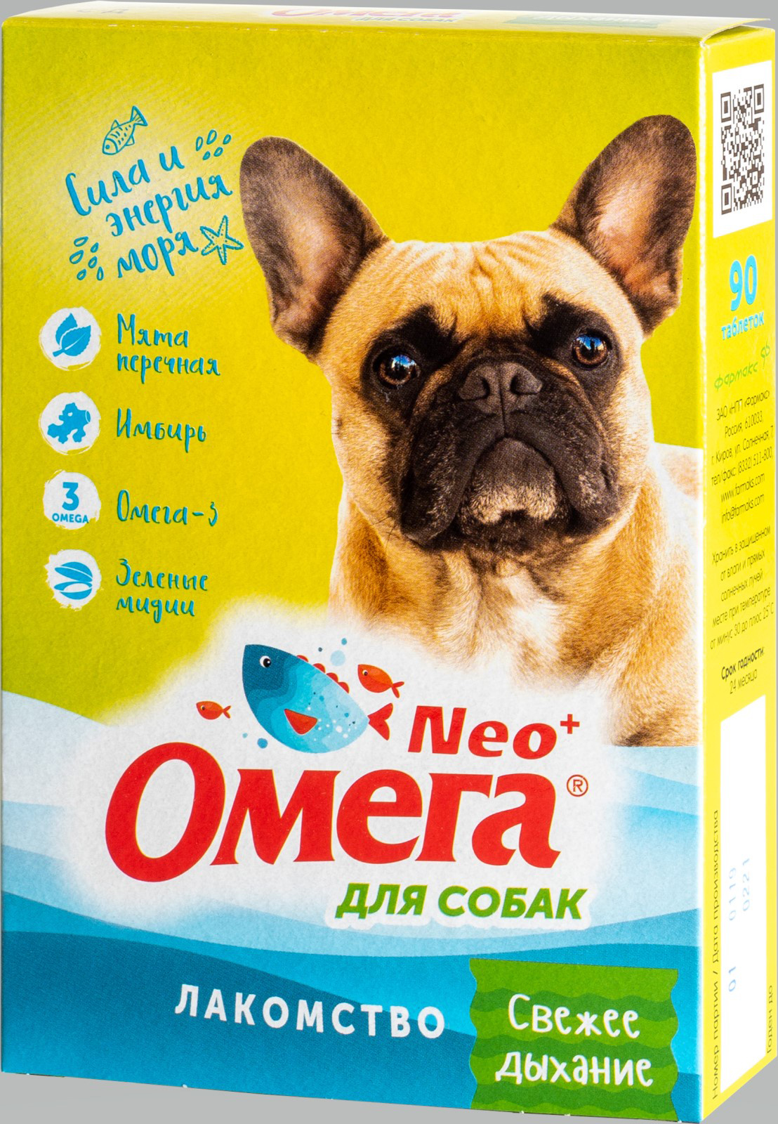 Лакомство мультивитаминное "Омега Neo+" с мятой и имбирем "Свежее дыхание" предназначено для поддержания здорового и активного образа жизни, поощрения, баловства и дрессировки собак. Омега Neo+ единственное отечественное лакомство, содержащее в составе новозеландские зеленые мидии, морские водоросли и Омега-3 кислоты. Мята перечная освежает дыхание. Имбирь улучшает переваривание корма. Новозеландские зеленые мидии укрепляют хрящевую ткань суставов. Омега-3 кислоты поддерживают иммунитет и улучшают состояние кожи и шерсти. Пивные дрожжи – натуральный источник витаминов группы В.Не содержит сахара, соли, глютена, красителей и искусственных ароматизаторов.Назначение: Вкусное и полезное лакомство для устранения неприятного запаха из пасти, поощрения, баловства и дрессировки собак.Применение и дозировка: Рекомендуется применять ежедневно в течение всего года собакам мелких пород 3-6 таблеток, собакам средних пород 6-9 таблеток, собакам крупных пород 9-15 таблеток.Состав: Сухие пивные дрожжи (источник витаминов группы В), сухое обезжиренное молоко, лактоза, морские водоросли (2 %), протеина не менее 29 %, золы не более 15 %, жира не менее 1,5 %, кальция не менее 0,4 %, фосфора не менее 0,5 % (на сухое вещество); влаги не более 9 %; жирных кислот класса Омега-3 не менее 1,5 мг.Форма выпуска: Таблетки по 0,5 г.Фасовка: Коробка (90 таблеток)Условия хранения, срок годности: В сухом, защищенном от света месте при температуре от минус 30 до плюс 25° С.Срок годности: 24 месяца.