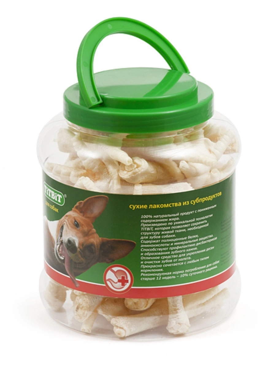 Высокое содержание хрящевой и соединительной ткани. Обеспечивает дополнительное поступление в организм необходимых элементов для роста, развития и поддержания в норме суставов. Привлекательное лакомство для собак мелких пород, используется как игрушка, отлично очищает зубы и массирует десны. Применять с осторожностью для собак с аллергией на куриный белок. Изделие содержит трубчатую кость и не предназначено для полного поедания. Как только собака съела футляр из кожи, сухожилий и мышц – необходимо заменить лакомство на новое.