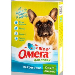 Лакомство "Омега Neo+" с мятой и имбирем "Свежее дыхание" для собак, 90 таблеток