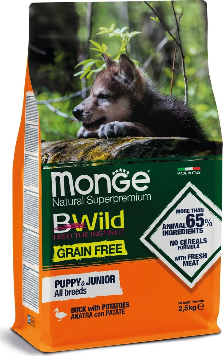 Полнорационный корм для щенков всех пород с уткой и картофелем, не содержит зерновых культур. Это питательный, высокоусваиваемый корм с высокой вкусовой привлекательностью. Оптимальное соотношение Омега-3 и Омега-6 жирных кислот обеспечивает блестящую шерсть и здоровую кожу питомца. Входящий в состав женьшень повышает общую сопротивляемость организма. Содержит глюкозамин и хондроитин для поддержания здоровья суставов и оптимального развития скелета. Щенок будет расти сильным и здоровым. Продукт не содержит красителей и консервантов. Анализ компонентов: сырой белок 29,00%, сырые масла и жиры 18,00%, сырая клетчатка 2,00%, сырая зола 7,50%, кальций 1,50%, фосфор 1,00%, омега-6 жирные кислоты 3,75%, омега-3 жирные кислоты 1,10%. Пищевые добавки/кг: витамин А (как ретинола ацетат) 26000 МЕ, витамин D3 (как холекальциферол) 1700 МЕ, витамин Е (альфа-токоферол ацетат) 150 мг, витамин B1 (тиамина нитрат) 12 мг, витамин B2 (рибофлавин) 15 мг, витамин B6 (пиридоксинагидрохлорид) 7 мг, витамин B12 140 мг, витамин H (биотин) 19 мг, витамин PP (ниацин) 90 мг, витамин C 180 мг, пантотеновая кислота 20 мг, фолиевая кислота 2,30 мг, холина хлорид 2900 мг, инозитол 3,30 мг, сульфат марганца моногидрат 103 мг (марганец 35 мг), оксид цинка 205 мг (цинк 155 мг), сульфат меди пентагидрат 50 мг (меди 13 мг), сульфат железа моногидрат 370 мг (железа 110 мг), селенит натрия 0,50 мг (селен 0,22 мг), безводный йодат кальция 2,60 мг (йод 1,75 мг). Аминокислоты/кг: L-карнитин 50%: 110 мг, DL-метионин 7 г. Технологические добавки/кг: МСМ (метилсульфонилметан) 500 мг, глюкозамин 500 мг, хондроитина сульфат 300 мг. Антиоксиданты: экстракт розмарина. Энергетическая ценность: 4 200 Ккал/кг.Состав: мясо утки (из которого 18% дегидрированного, 14% свежего), картофель, утиное масло, концентрат картофельного белка, пивные дрожжи, сухое цельное яйцо, свекольная пульпа, масло лосося, гидролизованный белок утиной печени, холина хлорид, безводный мононатриевый фосфат, гидролизованные дрожжи (МОС), фруктоолигосахариды (ФОС), натуральный экстракт каштана, женьшень, сердцевина ананаса, спирулина, яблочная мука, юкка Шидигера, витамины и минеральные соли, хондроитин,глюкозамина, МСМ. Индивидуальная непереносимость. Рекомендации по кормлению: щенкам в возрасте от 20 дней до 12 месяцев размачивать продукт теплой водой за несколько минут до кормления. Суточная норма должна быть разделена на 3-4 кормления. Суточная норма может варьироваться в зависимости от индивидуальных потребностей животного. Беременным и кормящим животным суточную норму кормления увеличить на 10%, в последние недели беременности норму увеличить до 25% и продолжать кормить таким количеством весь период лактации. Важно, чтобы у животного всегда была свежая питьевая вода.