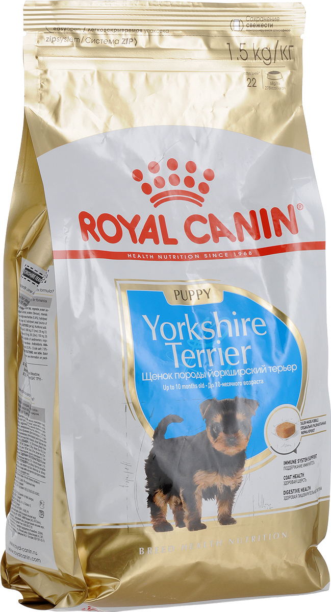 Сухой корм Royal Canin "Yorkshire Terrier Junior" - это полнорационный корм для щенков породы йоркширский терьер в возрасте до 10 месяцев. Здоровая шерсть. Эксклюзивная формула поддерживает здоровье и красоту шерсти йоркширского терьера. Корм обогащен жирными кислотами Омега-3 (EPA и DHA) и Омега-6, маслом бурачника и биотином. Безопасность пищеварения. Корм обеспечивает оптимальную безопасность пищеварения и поддерживает баланс кишечной флоры щенков йоркширского терьера. Надежная естественная защита. Корм позволяет обеспечить естественную защиту организма щенка йоркширского терьера. Профилактика образования зубного камня. Благодаря хелаторам кальция и специально подобранной текстуре крокет, которая оказывает чистящее воздействие, корм помогает ограничить образование зубного камня у щенков породы йоркширский терьер. Состав: дегидратированные белки животного происхождения (птица), изолят растительных белков, рис, животные жиры, кукурузная мука, свекольный жом, гидролизат белков животного происхождения, минеральные вещества, соевое масло, рыбий жир, фруктоолигосахариды, дрожжи, гидролизат дрожжей (источник маннановых олигосахаридов), масло огуречника аптечного (0,1%), экстракт бархатцев прямостоячих (источник лютеина). Добавки (в 1 кг): Питательные добавки: витамин A: 29500 МЕ, витамин D3: 800 МЕ, Биотин: 3,07 мг, E1 (железо): 49 мг, E2 (йод): 4,9 мг, E5 (марганец): 64 мг, E6 (цинк): 192 мг, E8 (селен): 0,11 мг. Технологические добавки: триполифосфат натрия: 3,5 г, консервант: сорбат калия, антиокислители: пропилгаллат, БГА. Содержание питательных веществ: Белки 29%, жиры 20%, минеральные вещества 7%, клетчатка пищевая 1,3%. В 1 кг: жирные кислоты Омега 3: 7,2 г, в том числе жирные кислоты EPA и DNA: 3 г, жирные кислоты Омега 6: 37,2 г, медь: 15 мг. Товар сертифицирован.Уважаемые клиенты! Обращаем ваше внимание на то, что упаковка может иметь несколько видов дизайна. Поставка осуществляется в зависимости от наличия на складе.