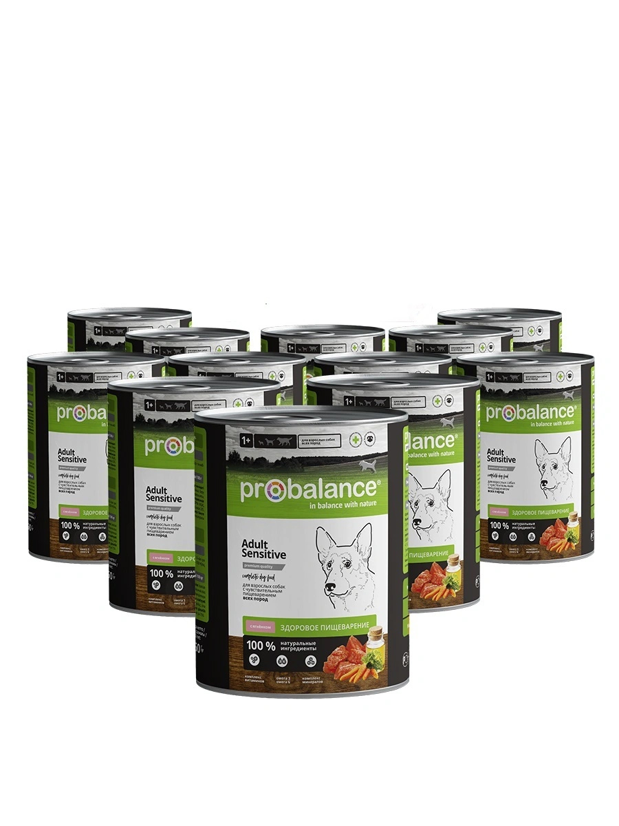 Полнорационный сбалансированный консервированный корм премиум класса для собак с чувствительным пищеварением. Консервированный корм Probalance "Sensitive" специально разработан для кормления питомцев с чувствительным пищеварением и склонных к аллергии.В упаковке 12 шт. по 850 г каждая банка.Ингредиенты полностью натуральные (мясо и овощи), без Е-консервантов и красителей. Все компоненты идеально сбалансированы под особенности чувствительного желудочно-кишечного тракта животного. Основа корма – мясо баранины. Главное преимущество этого вида мяса – высокая питательность и низкий индекс аллергенности. Рацион содержит основные витамины и минералы, которые нужны организму собак (A, D, E, фосфор, кальций и другие). При регулярном кормлении корм способствует нормализации пищеварения и снижает видимые признаки аллергии.Корма Probalance (Пробаланс) – баланс вкуса и пользы. Премиальное сбалансированное питание с учетом возраста и индивидуальных особенностей вашего питомца. Сырье от проверенных европейских поставщиков, многоступенчатый контроль производства обеспечивают высокое качество продукта.Состав: Баранина (не менее 24 %), субпродукты мясные, морковь, растительное масло, желирующая добавка, соль, вода. Энергетическая ценность: 100,5 ккал / 100 г.Гарантированные показатели: влажность – 82%, сырой протеин - 7%, сырой жир - 9%, сырая зола - 2%, фосфор - 0,5%, кальций - 0,6%, витамин А – 1500 МЕ/кг, витамин D3 - 150 МЕ/кг, витамин Е - 15 мг/кг