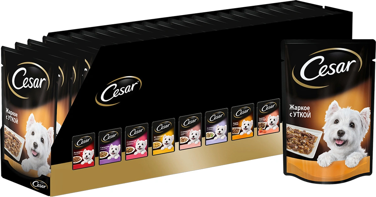 Новинка в ассортименте Cesar®! Жаркое из утки – нежные кусочки в ароматном желе. Изысканное угощение для Вашего питомца. Рационы Cesar® разработаны по специальной формуле, учитывающей все потребности и физические особенности собак маленьких пород. Они содержат все необходимые витамины, минералы и питательные вещества, поддерживающие здоровье вашего любимца. При кормлении влажными рационами обязательно доведите продукт до комнатной температуры. Предназначено для собак весом от 3 до 6 кг: - для собак весом от 3 до 4-х кг - не более 2-3-х упаковок в день; - для собак весом от 4 до 6 кг - не более 3-4-х упаковок в день; - для собак весом 6 кг - не более 4-5-ти упаковок в день. Не забывайте о свежей воде, которая должна быть в миске вашего питомца постоянно.Состав: мясо и субпродукты минимум 38% (в том числе утка), злаки, клетчатка, витамины, минеральные вещества. Содержание питательных веществ в 100гр: белки – 8,5г, жиры – 3,5г, зола – 2,0г, клетчатка – 0,3г, влага – 82г, витамин А – не менее 150МЕ, витамин Е – не менее 1,2мг. Энергетическая ценность 78ккал/328кДж