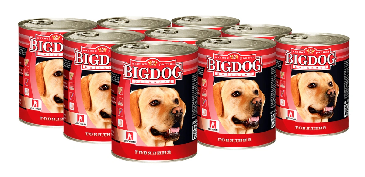 Состав: Говядина, субпродукты, натуральная желирующая добавка, злаки (не более 2 %), соль, вода
