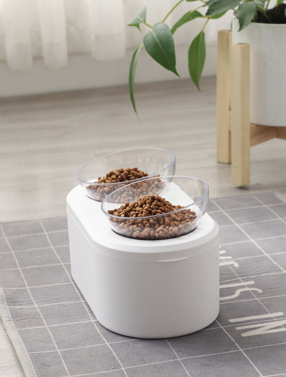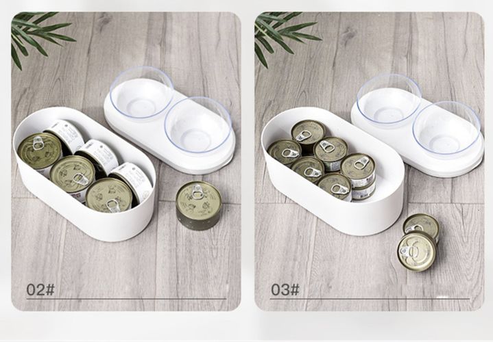 Материал: пищевой пластик. Противоскользящая подошва. Угол наклона миски - 15 градусов, чтобы у питомца всегда была идеальная осанка. Съемные чаши легко моются. Высота миски снимает нагрузку для шейного отдела. Миска 3 в 1: бокс для хранения, корм и вода для питомца. Объем каждой чаши - 420 мл.