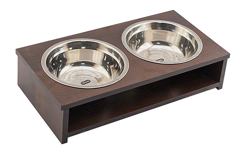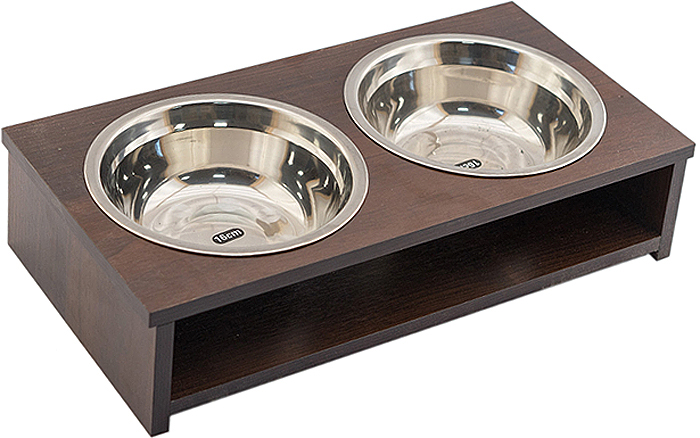 Кормушка с двумя мисками из пищевой нержавеющей стали, для небольших пород собак и кошек. Корпус кормушки изготовлен из ЛДМф, обладающего высокой влагостойкостью. Покрытие материала, имитирующее массив венге, как облагораживает внешний вид, так и препятствует развитию на изделии грибков и плесени. Темный оттенок венге способен не только эффектно подчеркнуть геометрию, но и привнести роскошь и благородство в образ интерьера. Высота миски 10 см.