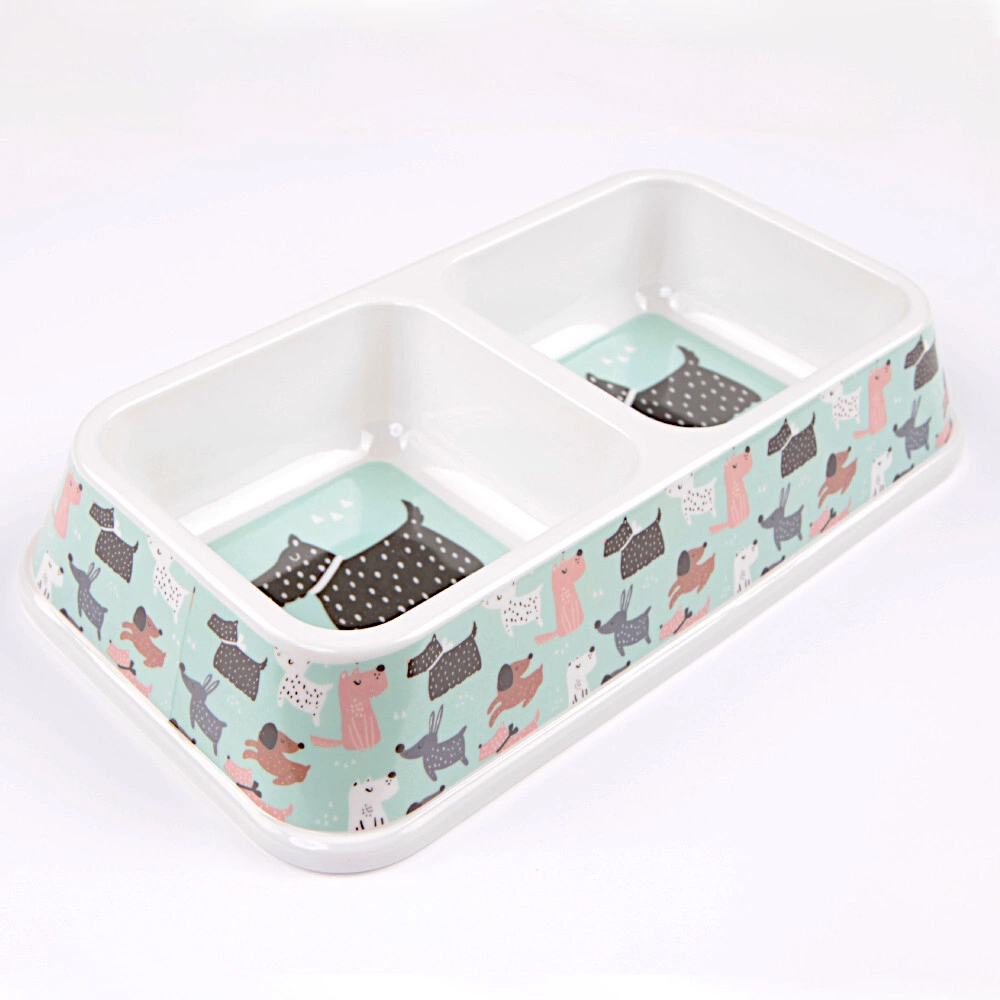 Миска двойная, 9х16х5.5 см, 470 мл, цвет голубой, выполнена из прочного полимера, устойчивого к образованию трещин и царапин, подходит для кошек и собачек мелких пород.Можно использовать для воды и корма.Миска устойчивая, благодаря расширяющемуся основанию. Ставится на пол или защитный коврик.Внешний край миски и дно украшены рисунком собачки.