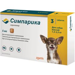 Жевательные таблетки Zoetis Симпарика, для собак весом от 1,3-2,5 кг, 5 мг, 3 шт