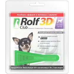 Rolf Club 3D Капли, для собак до 4 кг, от клещей, блох и комаров
