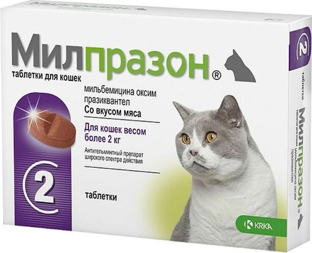 Милпразон антигельминтик для кошек более 2 кг, таблетки 16 мг/40 мг 2 шт.