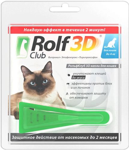 Rolf Club 3D Капли, для кошек до 4 кг, от клещей, блох и комаров