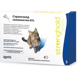 Капли для кошек Zoetis Стронгхолд 45 мг, 2,6-7,5 кг, 3 пипетки х 0,75 мл